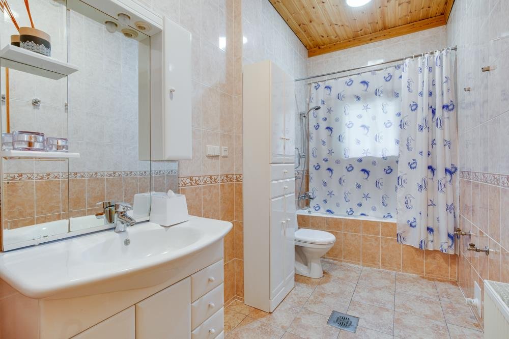 1 этаж: холл, с/у гостевой, кухня-столовая-гостиная с камином, кабинет с камином, 2 спальни, с/у с ванной, сауна с/у с душем, комната отдыха, постирочная, кладовка. Все комнаты с выходом на террасу.