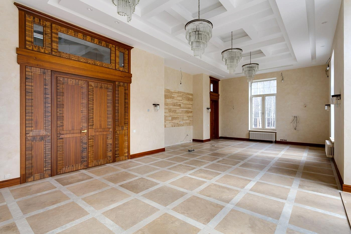 Цоколь: гостиная, домашний кинотеатр, винный погреб, санузел, сезонная гардеробная, кладовые, прачечная, техпомещение бассейна, комната садовника, санузел для персонала.