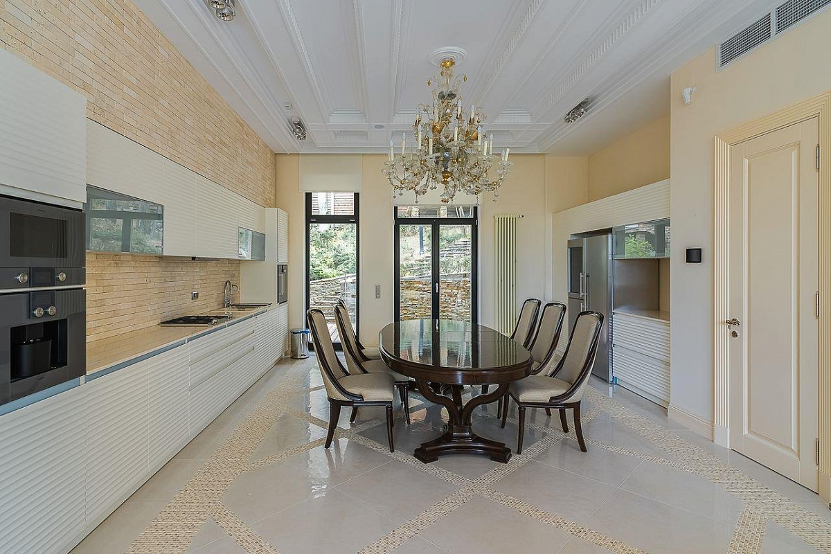 Таунхаус оснащен системой Умный дом на базе Control4. Управление освещением, шторами и отоплением. Мультирум и домашний кинотеатр, аудио-видео оборудование Sony, Bowers&Wilkins. Система охранно-пожарной сигнализации PARADOX. Система видеонаблюдения. Система доступа-домофоны BPT. Подогрев полов, кондиционирование и вентиляция зонного типа, которая позволяет поддерживать разные температурные режимы в жилых помещениях. Установлена система подогрева тротуарной плитки зоны въезда в гараж. Встроенная кухня производства компании Allmilmo (Германия) оборудована бытовой техникой Gaggenau (газовая плита, кофемашина, посудомоечная машина, СВЧ-печь), холодильник и винный шкаф Liebherr. В гостиной мягкая мебель Relotti (Италия). Прямой номер телефона и интернет от МГТС, спутниковое ТВ.