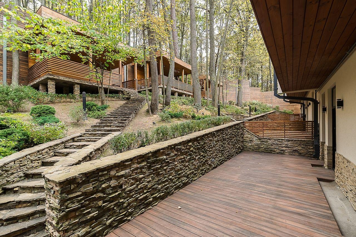 2 этаж: кухня-столовая-гостиная с камином, гостевая спальня, гостевой санузел.