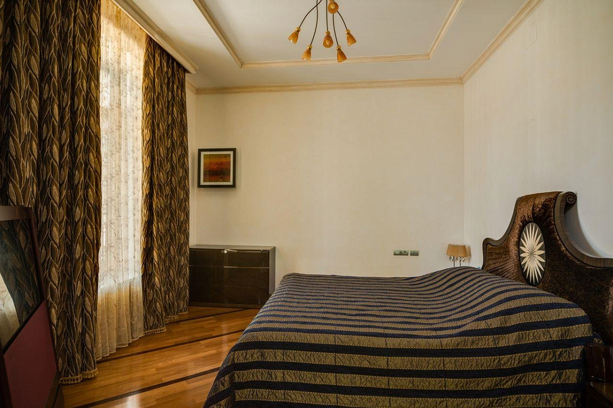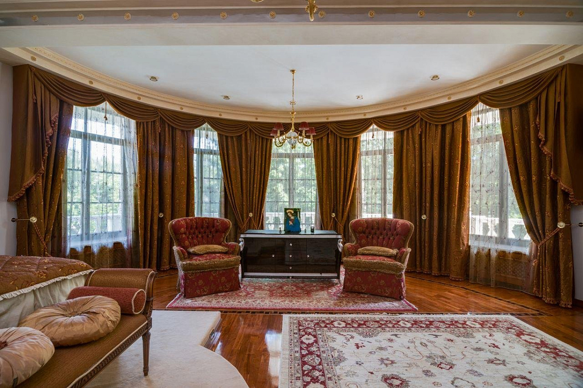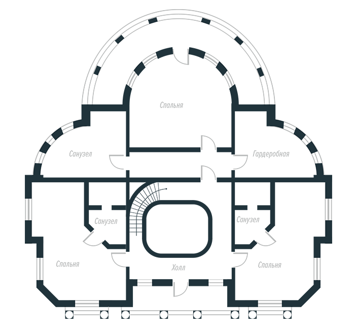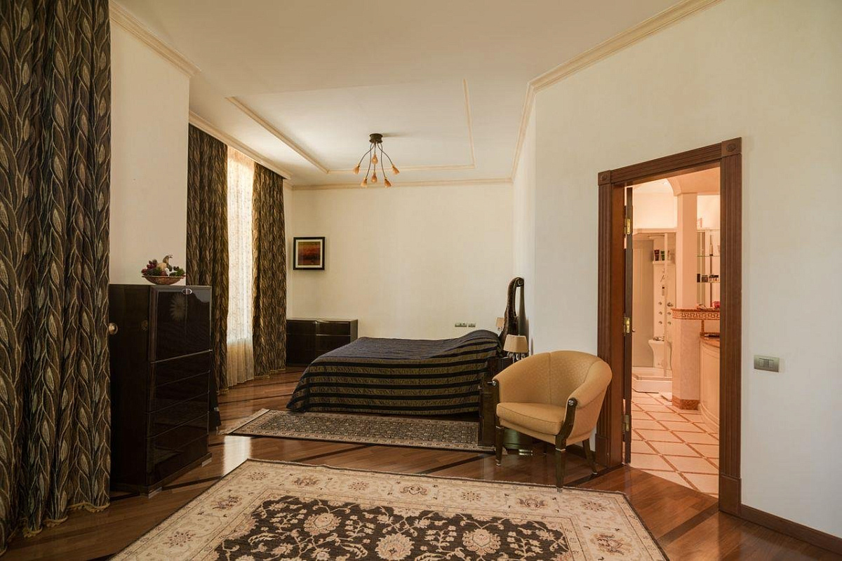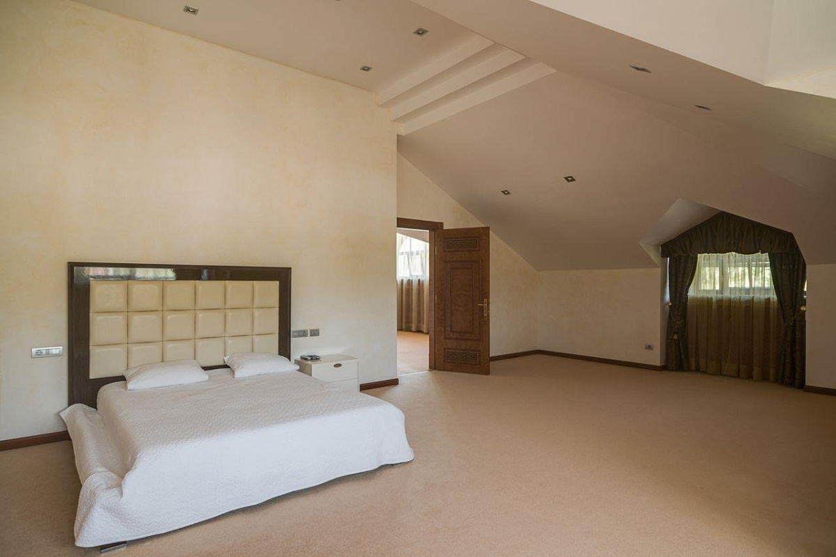 2 этаж: хозяйский блок: спальня с выходом на террасу, ванная комната, гардеробная; 2 спальни с индивидуальными с/у и гардеробными.