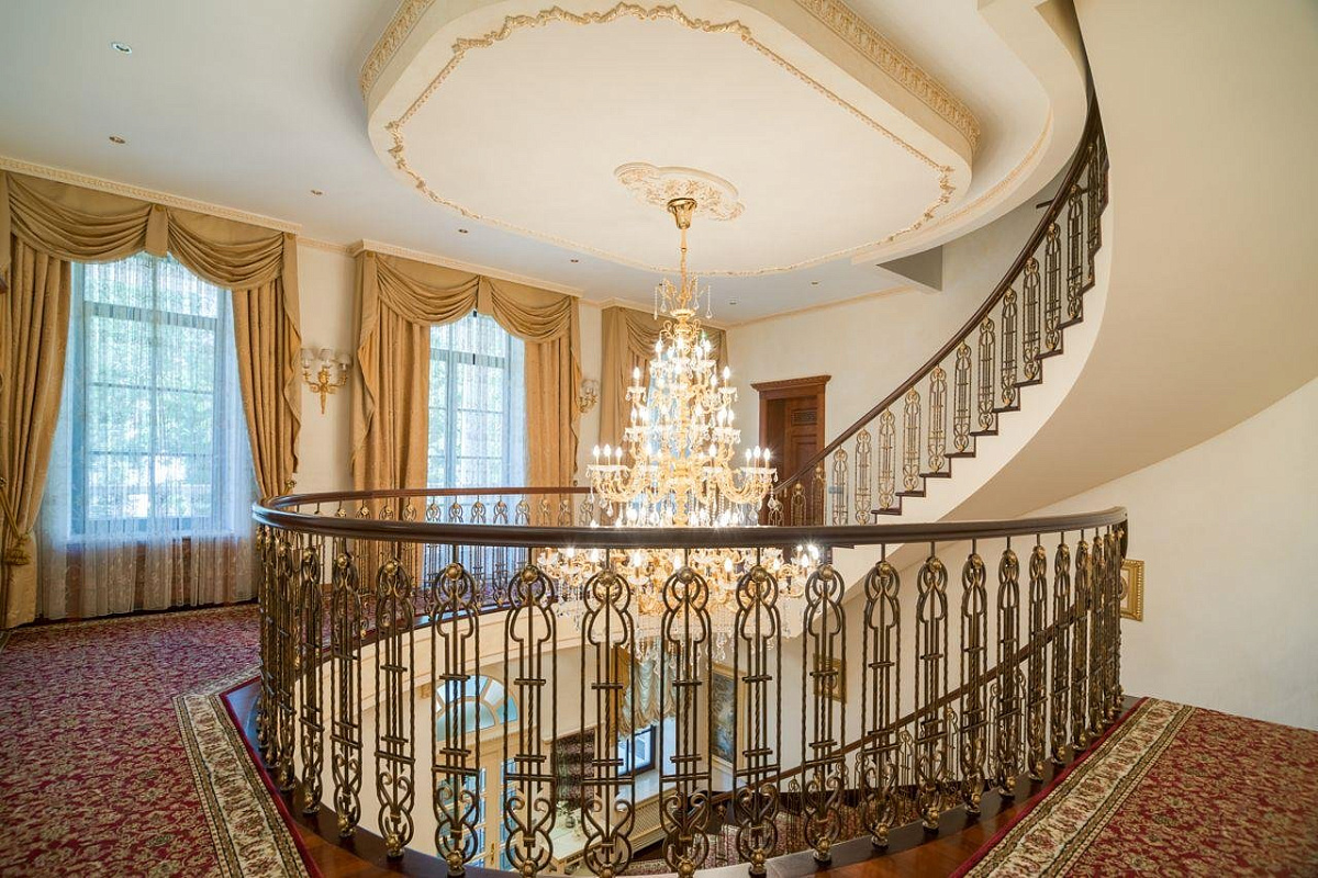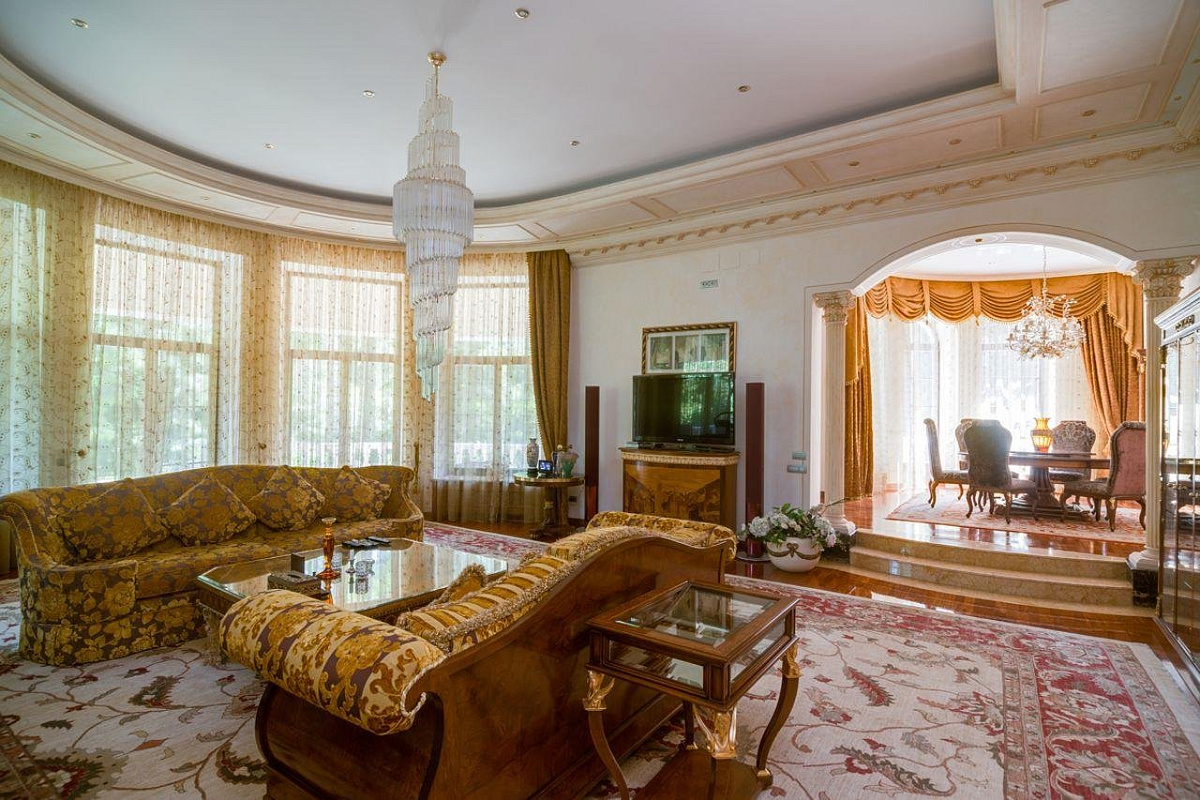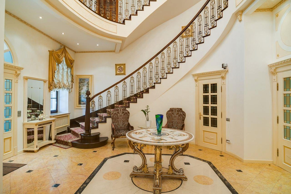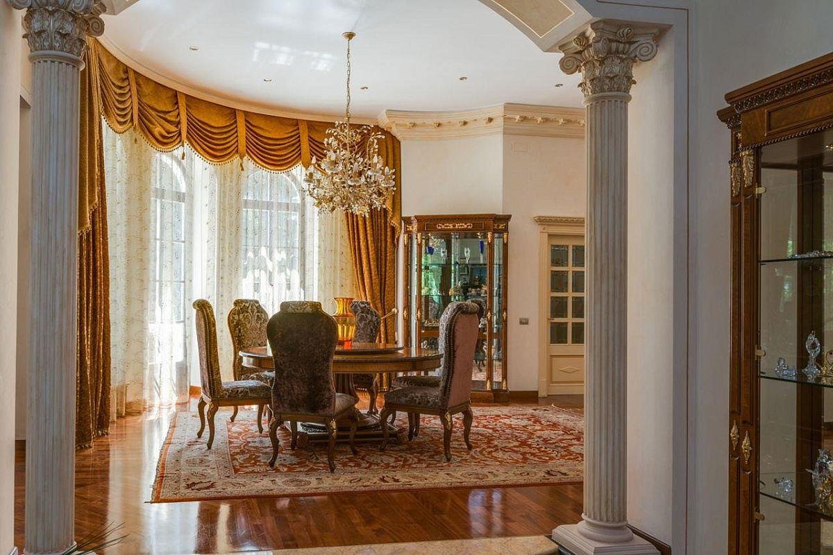 1 этаж: прихожая, холл, 2 гардеробные, гостевой с/у, гостиная с камином, кабинет с выходом на террасу, столовая, кухня, кладовая, постирочная, СПА-зона: бассейн, хаммам, джакузи, сауна, с/у, душевая, тренажерный зал.