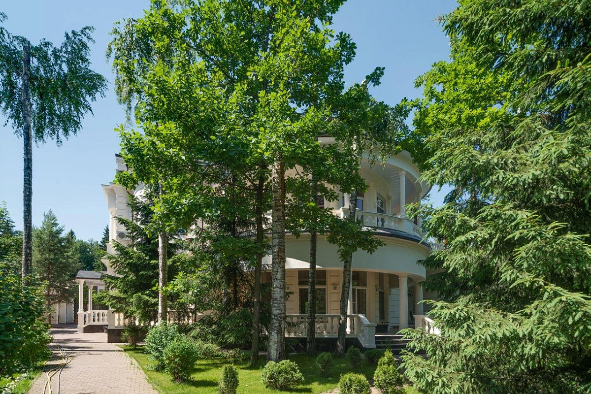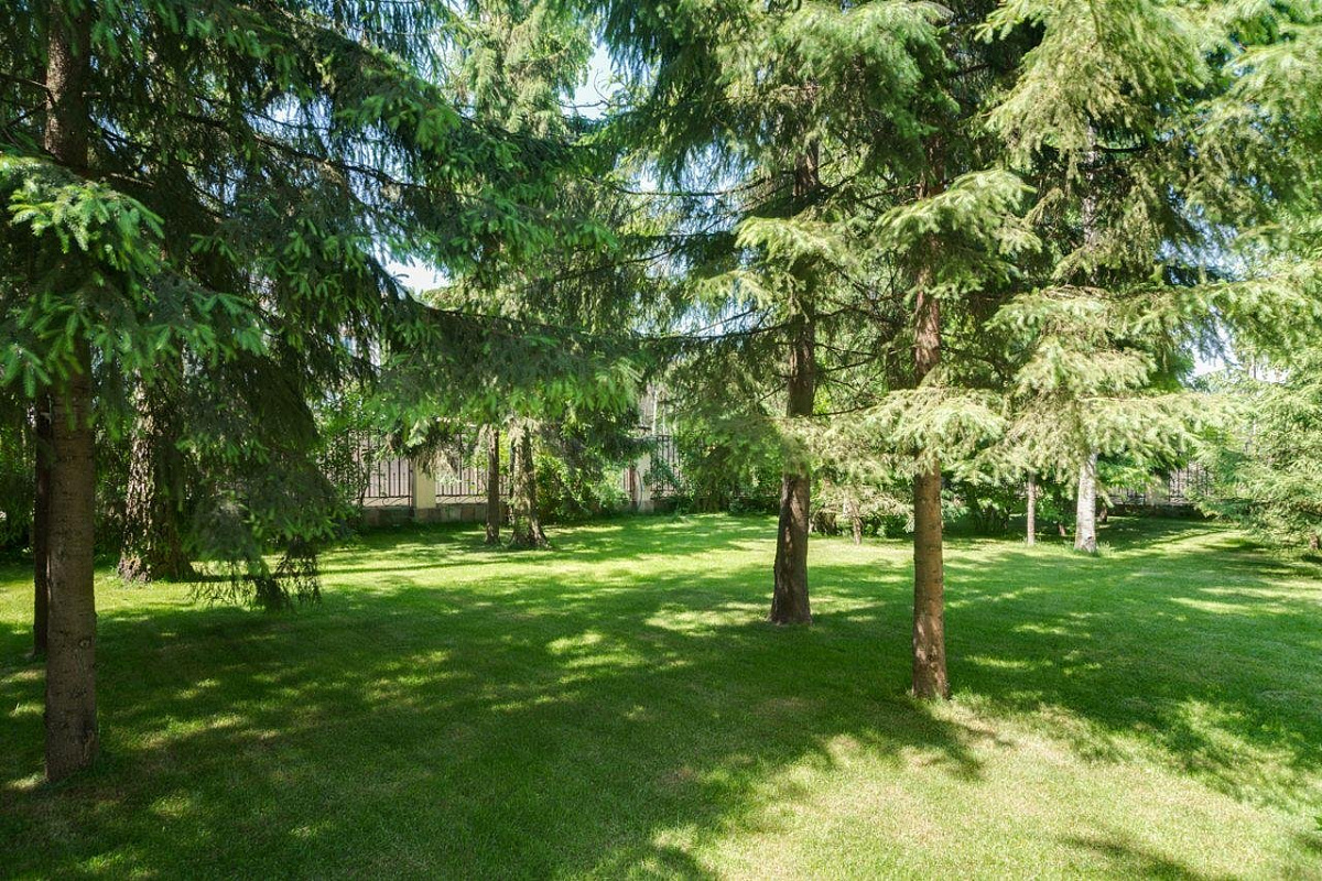 На участке расположен гараж на 4 м/м с квартирой для персонала, баня с зоной отдыха. Выполнен ландшафтный дизайн.