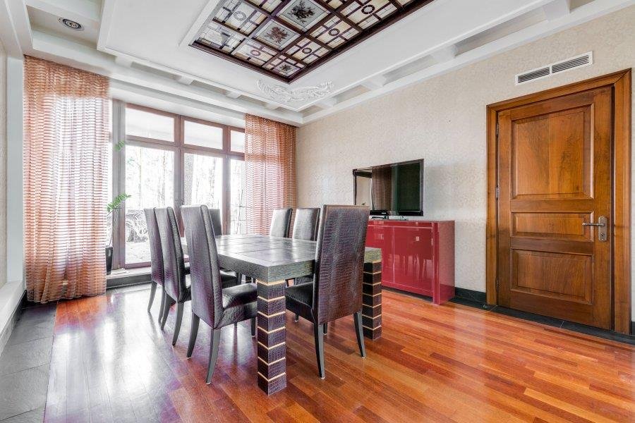 Стильный дом 800 кв.м в поселке ДСК Лес Жуковка. Дом полностью меблирован и готов к проживанию. На лесном участке 45 сот. с корабельными соснами участке выполнены ландшафтные работы, организован пруд с декоративными элементами в восточном стиле, беседка с зоной барбекю, вымощены дорожки, установлено освещение.