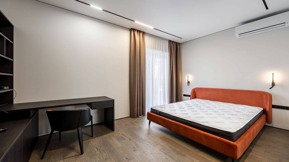 Сделан высококачественный ремонт в современном стиле. Квартира полностью меблирована премиальными брендами, установлена вся необходимая техника. Шкафы и письменный стол изготовлены по индивидуальному заказу.