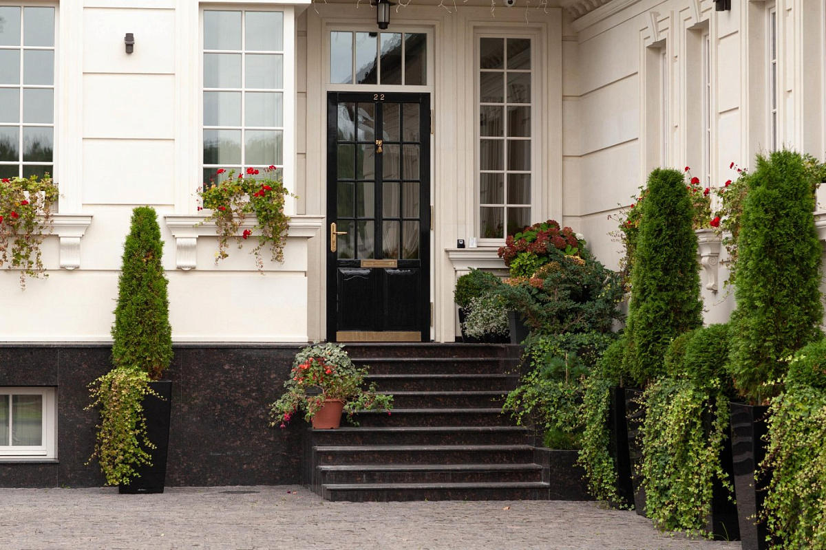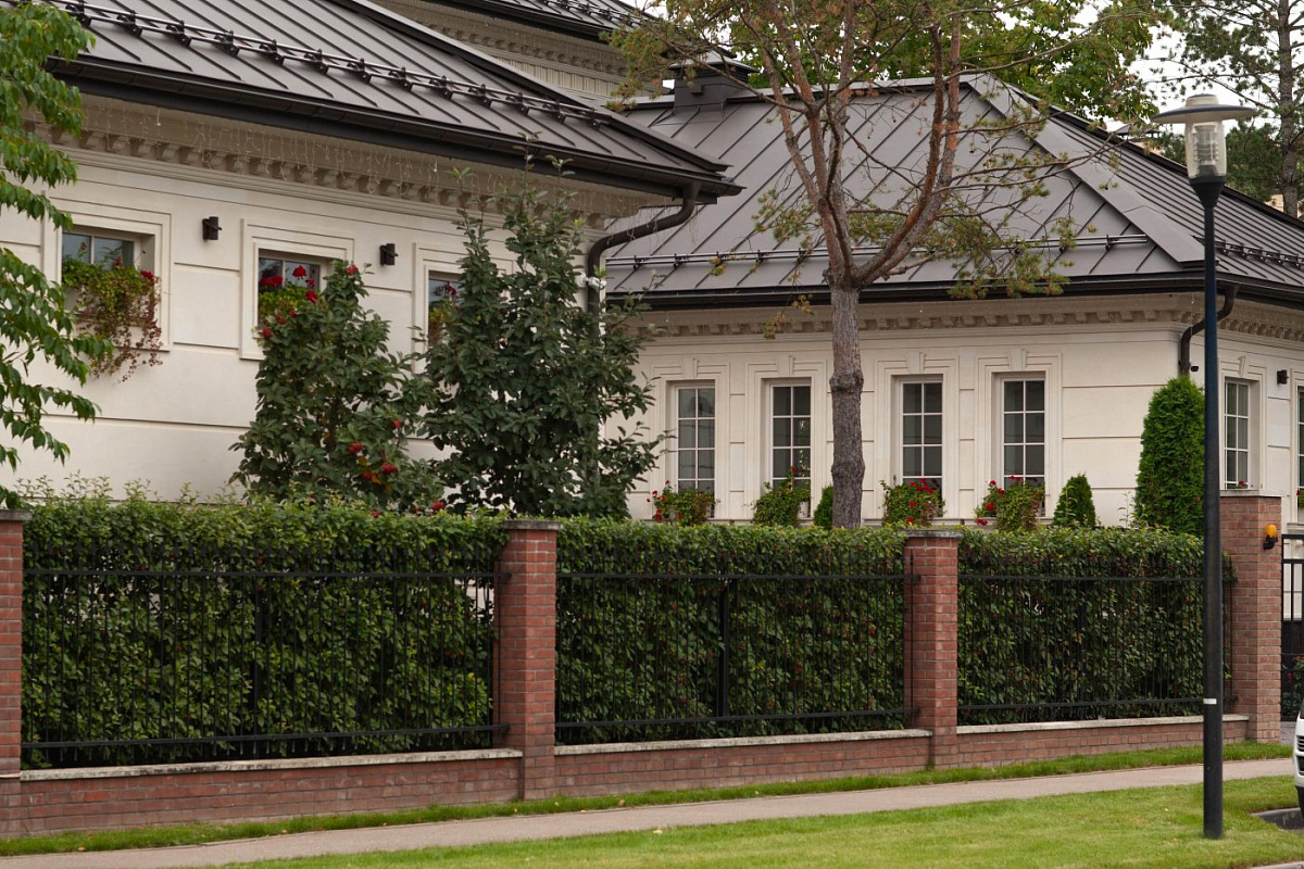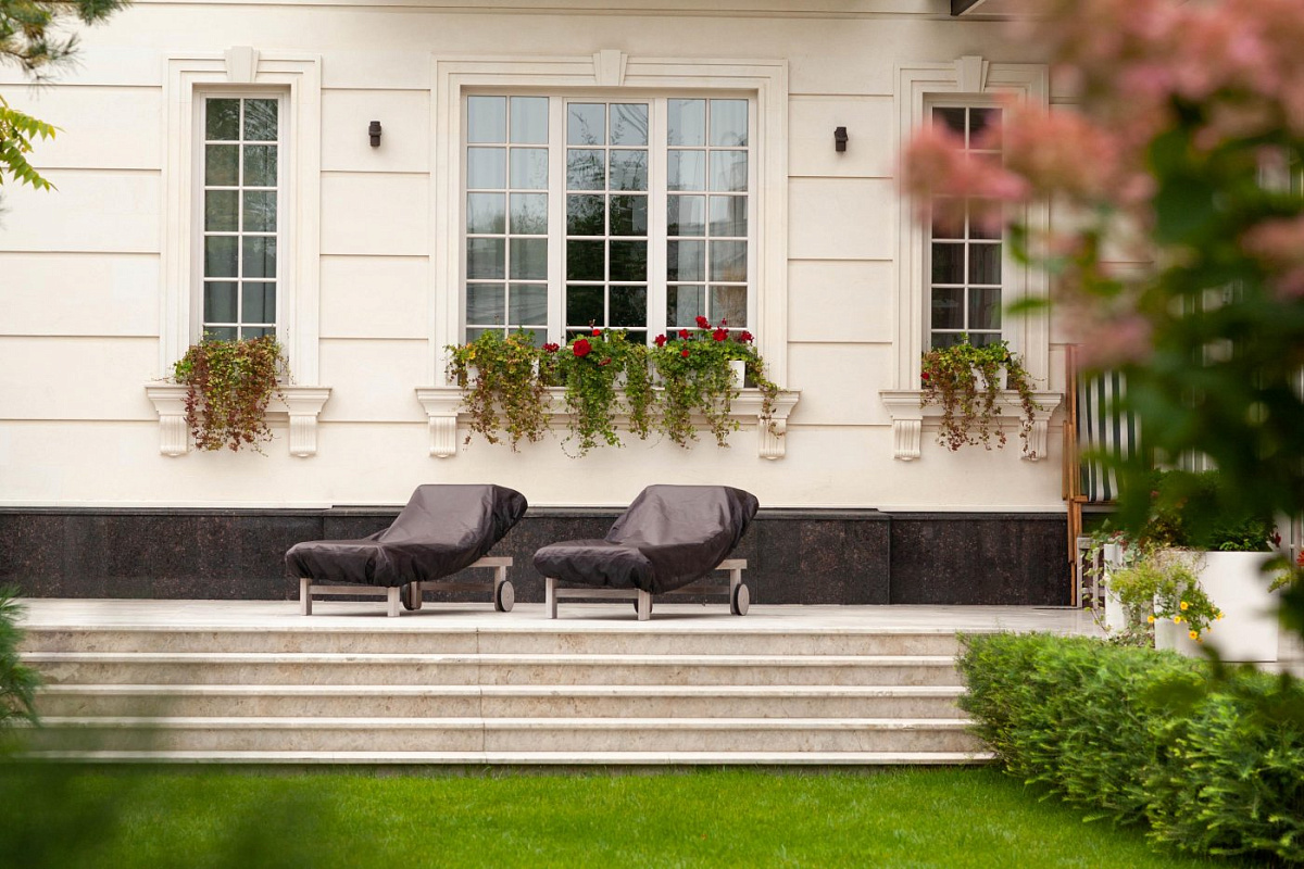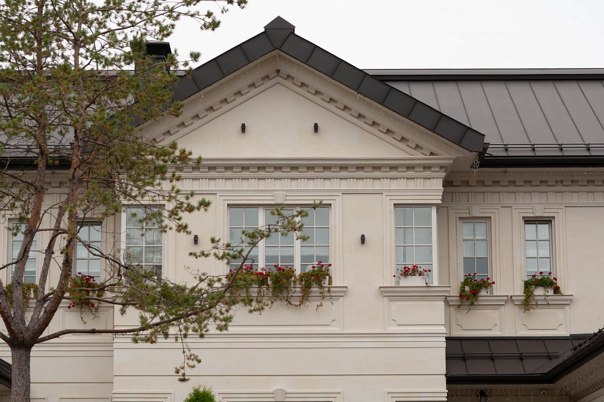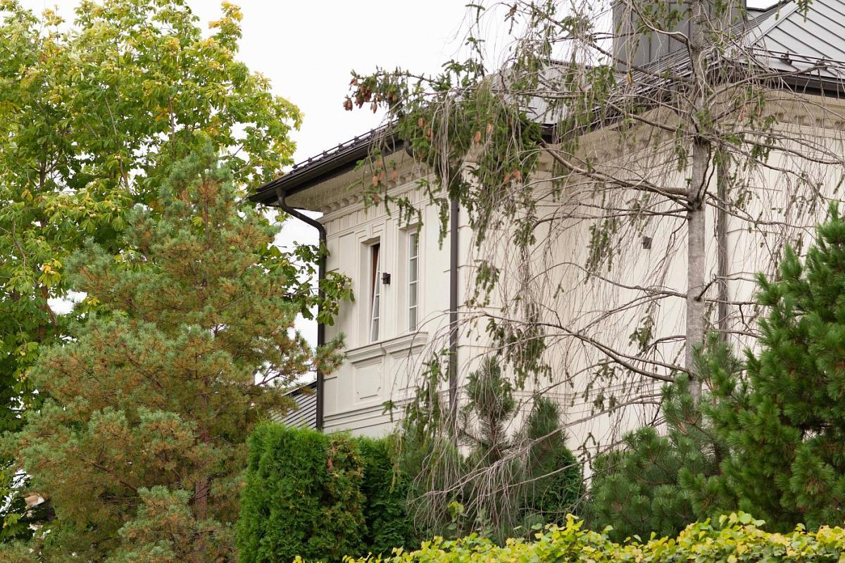 Дом выдержан в стиле современной классики. В строительстве и отделке интерьеров использовались качественные натуральные материалы (мрамор, дерево, стекло, металл). Конструктив дома – монолит-кирпич. Крыша – металл. Окна – дерево. Установлены система приточно-вытяжной вентиляции, увлажнение, кондиционирование. Мебель от известных мировых брендов.