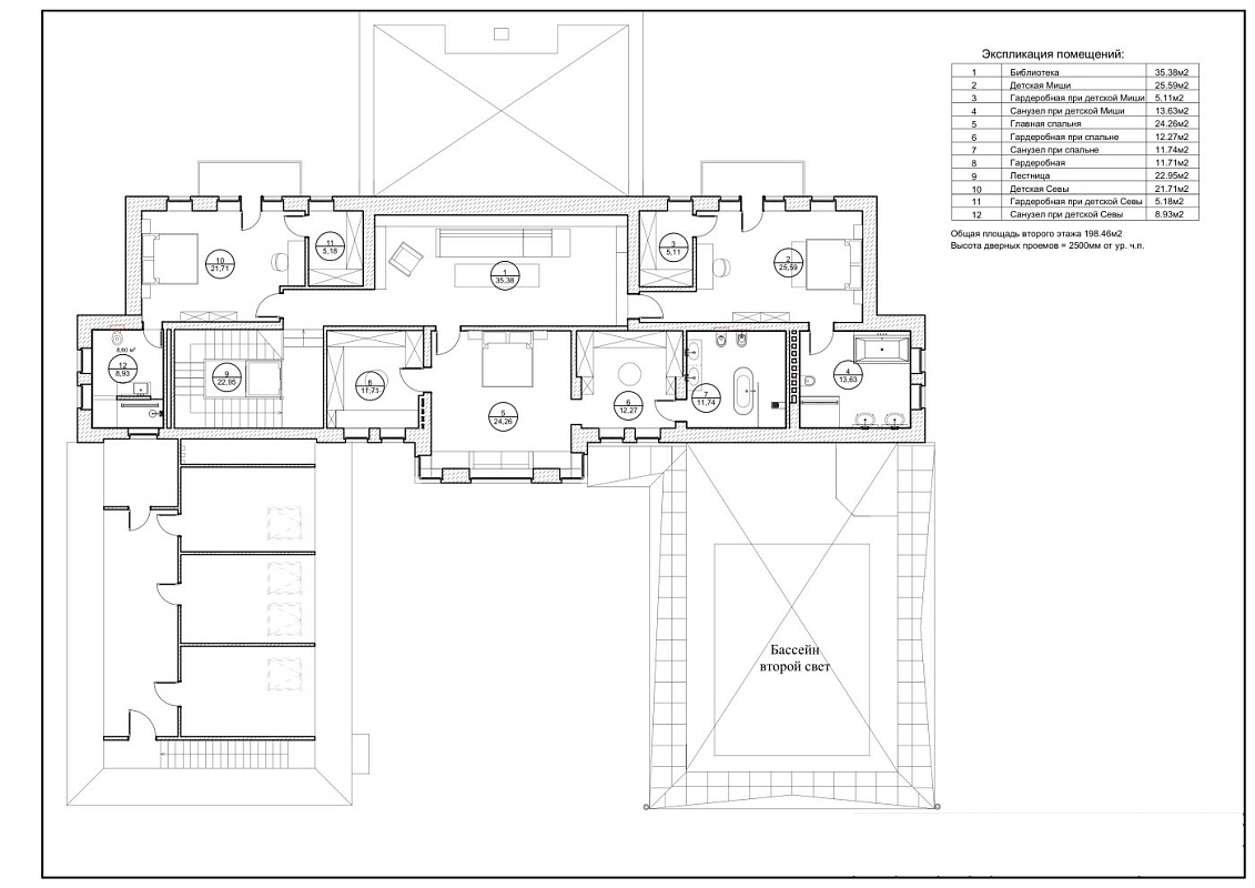 2 этаж: холл, 3 спальни с с/у и гардеробными.