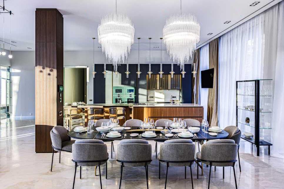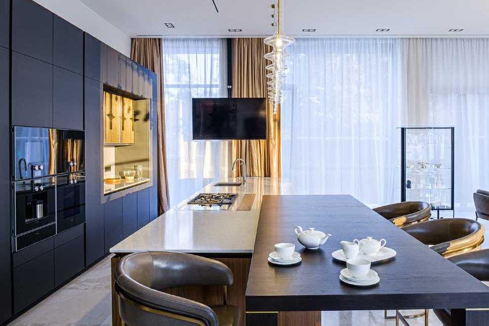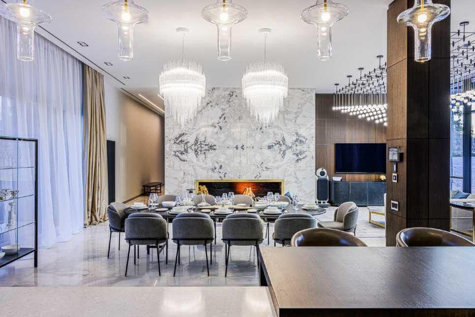 В отделке интерьеров использованы только качественные, дорогие материалы, много мрамора и стекла. Дорогая дизайнерская сантехника.