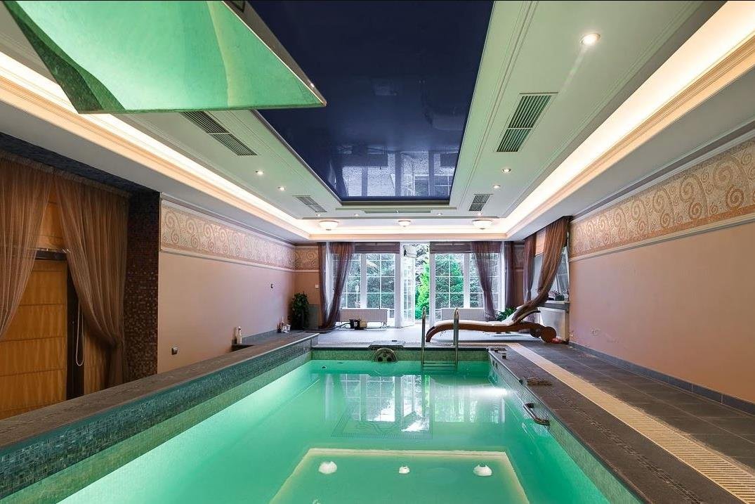 Цокольный этаж: СПА-зона: бассейн (10м.), сауна, хамам, комната отдыха, массажный кабинет и тренажерный зал.