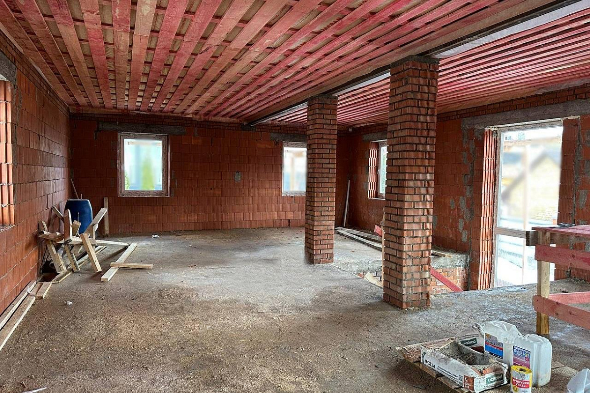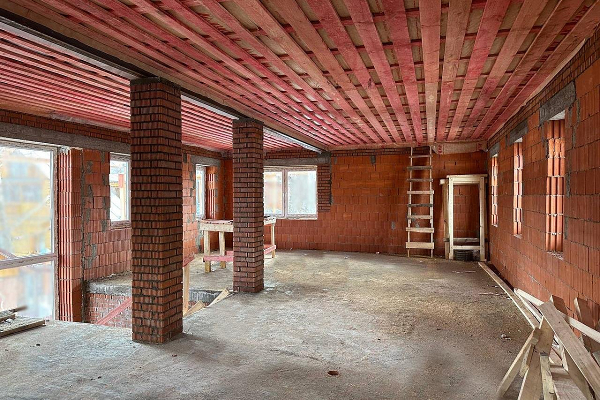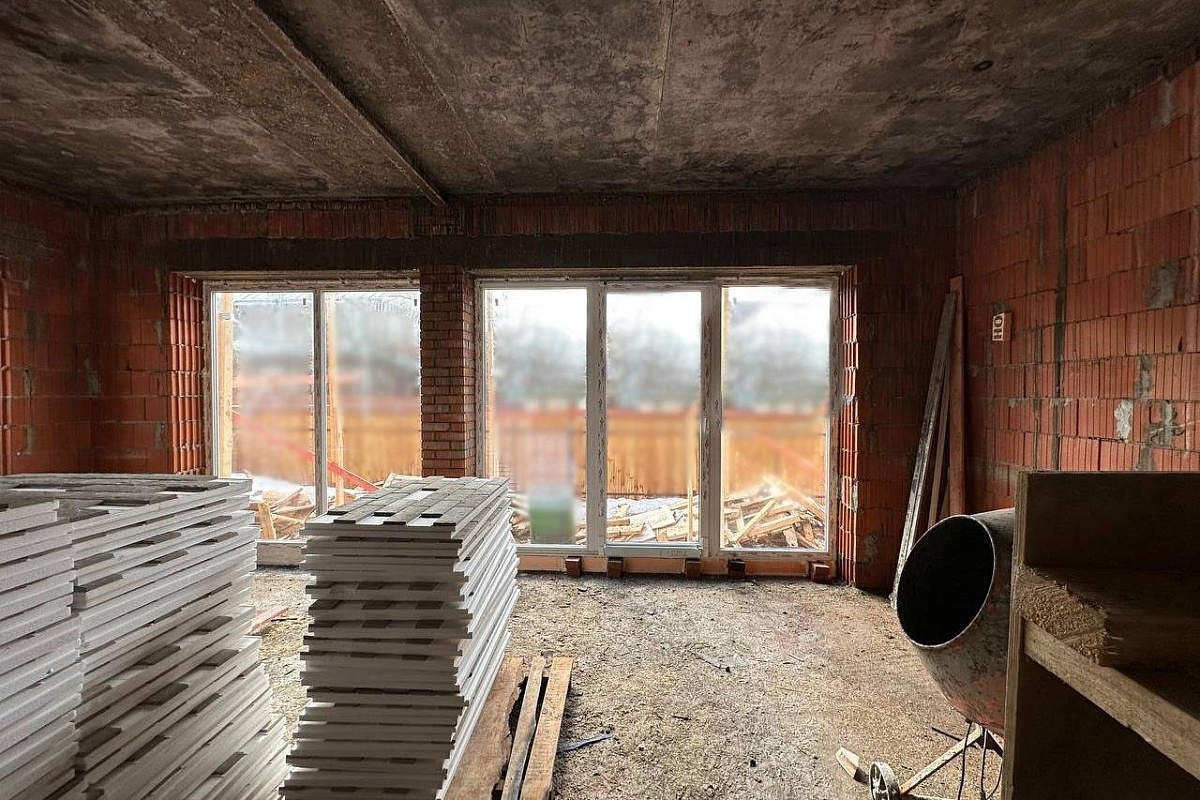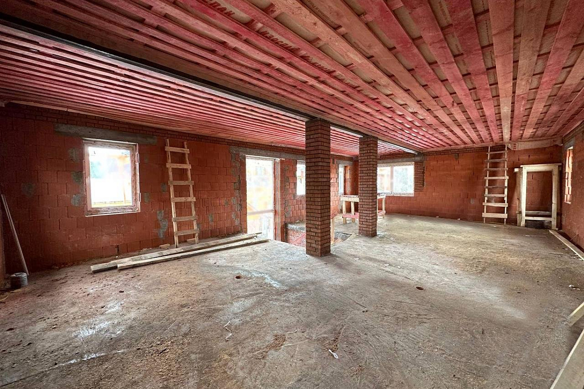 Коттедж 190 кв. м на участке 5 соток в охраняемом поселке в Шульгино. Дом на стадии строительства, стоит коробка, установлены окна, кровля, ведется отделка фасада. При строительстве использовались высококачественные материалы, стены выполнены из гжельского кирпича, кровля металлочерепица. Высота потолков 1 этажа - 3.10м, 2 этажа 2.85м.