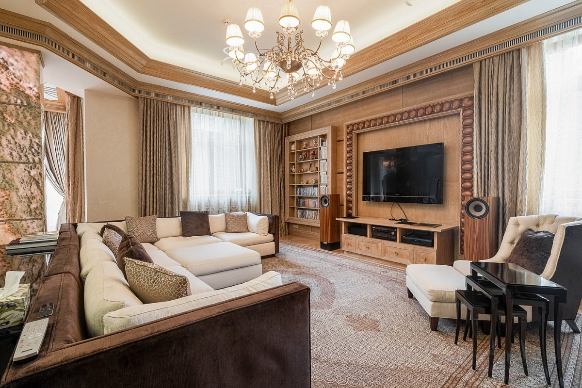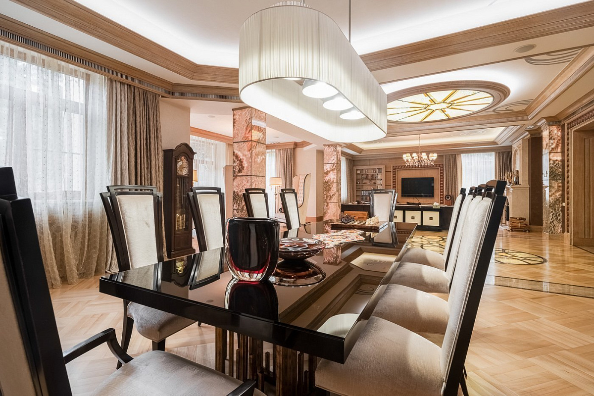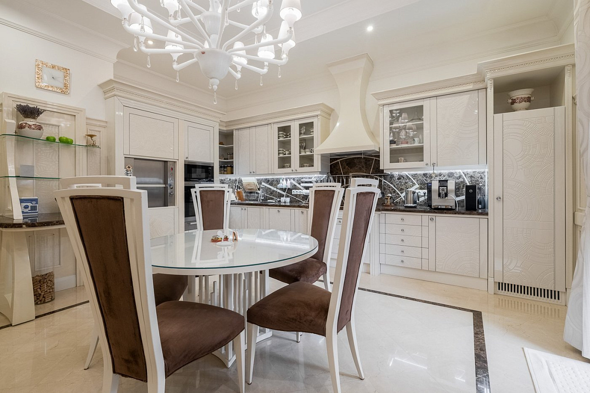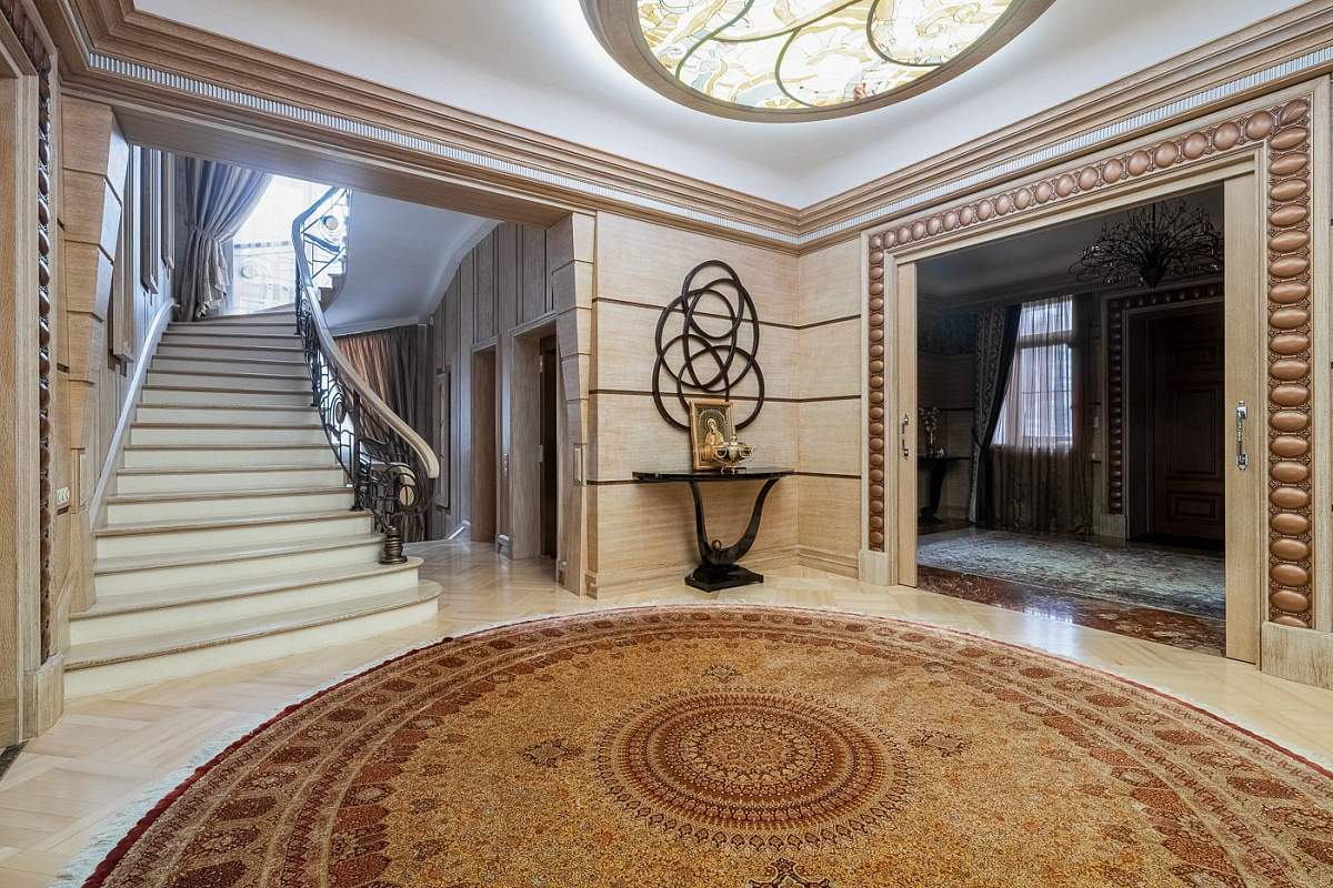 Цокольный этаж: кухня рабочая, бильярдный зал с камином, кинозал, винный погреб, 2 с/у, постирочная, массажная комната, тренажерный зал, с/у с душем, чемоданная комната;