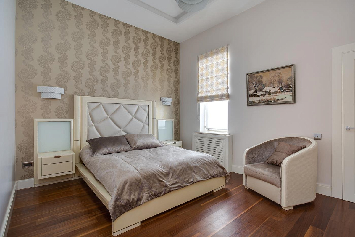 1 этаж: холл, гостевой с/у, гардеробная, большая двусветная гостиная с камином и роялем, кухня, кухню, столовая, тренажерный зал, SPA- зона с бассейном, сауной и хамамом; 2 спальни с индивидуальными ванными и гардеробными;