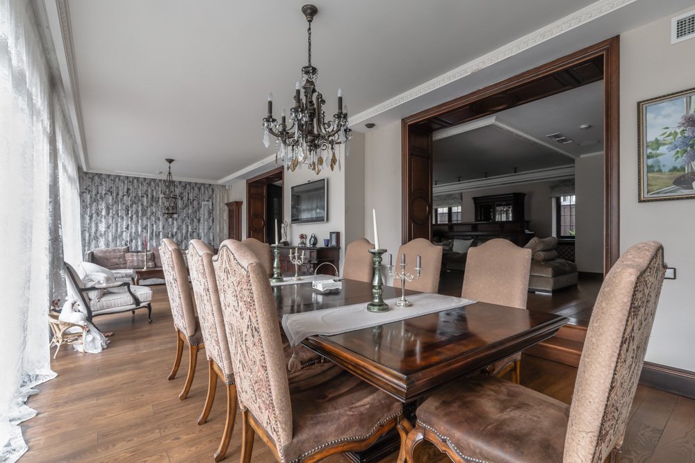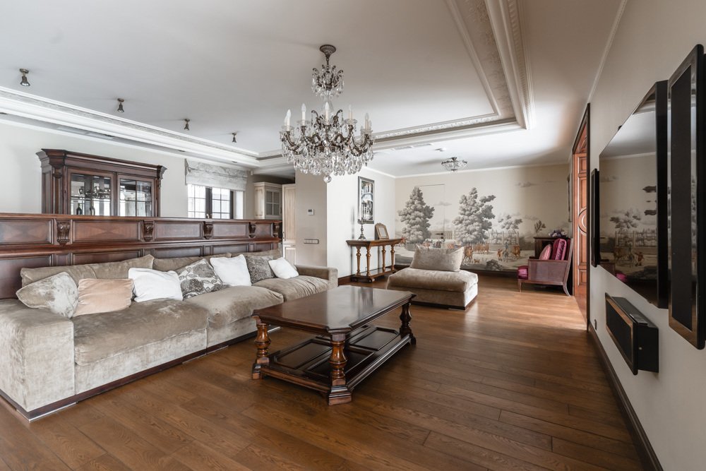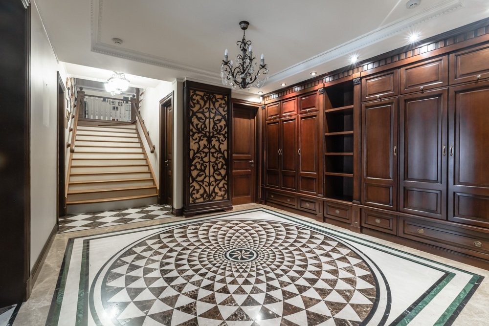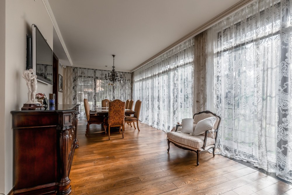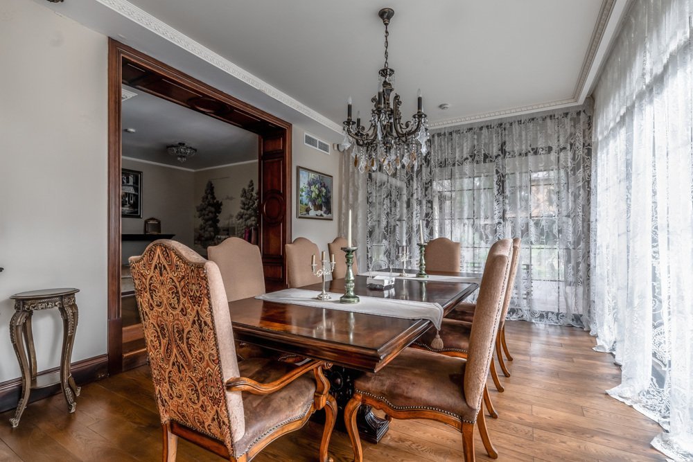 Резиденция "под ключ" с бассейном на просторном живописном участке, в окружении соснового бора, расположена на тихой обжитой улице Жуковки. Интерьер выполнен в стиле английской классики: используются дорогие натуральные материалы отделки (дерево, камень), благородные оттенки, вся мебель от итальянских знаменитых фабрик.